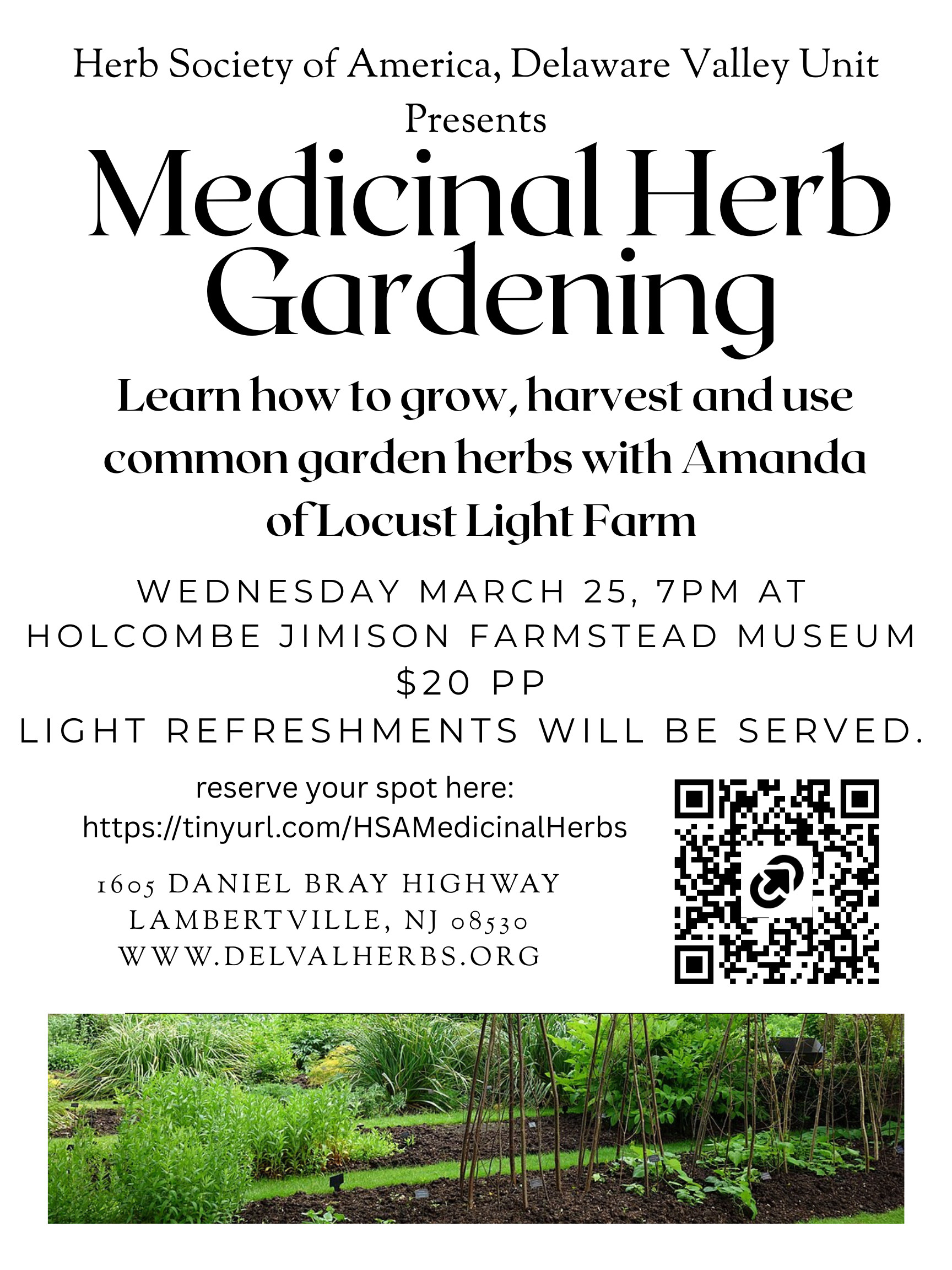 The Herb Society of America is dedicated to promoting the knowledge, use, and delight of herbs through educational programs, research, and sharing the experience of its members with the community. The Delaware Valley Unit of the Herb Society of America meets monthly at the Holcombe-Jimison Farmstead Museum, where we cultivate an International Culinary Herb Garden. We also sponsor several educational programs about herbs locally every year, and conduct an annual Herb Sale the third Saturday every May where one can find the old favorites and many unique herb plants.